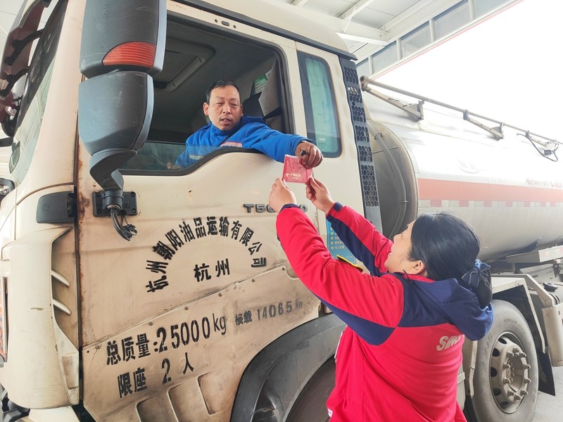 2月10日,春運返鄉高峰之際,交投能源公司工會在建盈村加油站愛心驛家開展“新春迎福 愛心送暖”活動,為返鄉務工司乘人員送上新春祝福。