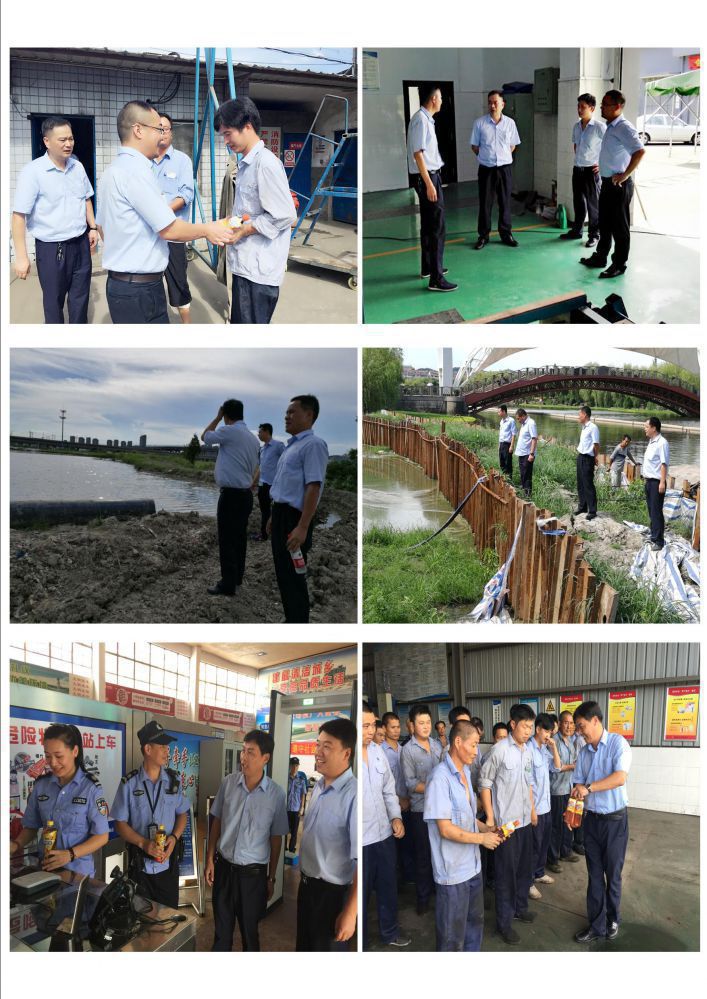 7月18日,公司總經(jīng)理湯偉東,副總經(jīng)理潘國(guó)華來(lái)到東站修理廠、特檢公司進(jìn)行高溫安全檢查,并向奮戰(zhàn)在生產(chǎn)一線的工作人員送去了清涼飲料。 檢查時(shí),公司領(lǐng)導(dǎo)與員工進(jìn)行了親切的交談,詳細(xì)了解了生產(chǎn)一線情況和人員身體情況。同時(shí),就高溫作業(yè)情況下的生產(chǎn)安全提出了要求。廣大員工一定要把安全生產(chǎn)放在第一位,合理安排時(shí)間,注重勞逸結(jié)合。各單位一定要做好各項(xiàng)防暑降溫措施,積極應(yīng)對(duì)高溫天氣造成的不利因素,確保生產(chǎn)工作安全有序。與此同時(shí),公司副總經(jīng)理許明芳帶隊(duì)相關(guān)人員排查了湘運(yùn)公司消防設(shè)施、員工宿舍及清淤現(xiàn)場(chǎng)用電設(shè)備等安全使用情況。對(duì)城區(qū)河道清淤現(xiàn)場(chǎng)的一線工作人員進(jìn)行慰問(wèn)。最后,就高溫作業(yè)提出了安全工作要求。