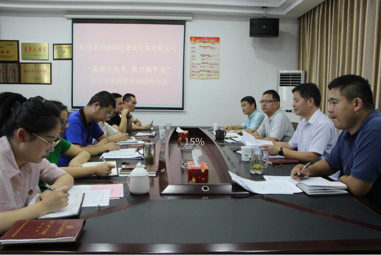 為響應(yīng)集團(tuán)“喜迎十九大 全力保平安”動員大會精神,迎接黨的十九大順利召開,8月24日下午,浦陽江開發(fā)公司召開“喜迎十九大 全力保平安”百日攻堅行動動員會議,公司全體員工參加。會上,公司總經(jīng)理韓國海傳達(dá)了集團(tuán)“喜迎十九大 全力保平安”動員會議祝董講話精神,同時結(jié)合公司實(shí)際工作提出了三點(diǎn)要求,一要思想認(rèn)識再提高,要求員工清醒認(rèn)識迎接十九大、大學(xué)生運(yùn)動會及文明城市復(fù)評迎檢工作重要意義,加強(qiáng)對自身要求;二要工作措施再落實(shí),從工程建設(shè)和行政管理兩個方面對公司開展的具體工作提出了詳細(xì)的要求;三要安全責(zé)任再細(xì)化,安全責(zé)任重于泰山,要求員工加強(qiáng)應(yīng)對,杜絕安全生產(chǎn)事故的發(fā)生,保證工作平穩(wěn)順暢開展。