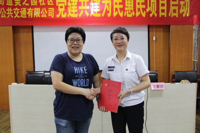 孔富明副局長對共建項目給予充分肯定和支持,對項目落實、共建成效寄予厚望,并從三個方面作了致辭,一是祝賀,對兩個黨組織順利結對表示祝賀;二是感謝,感謝公交公司和社區(qū)的大力支持,既解決居民出行問題,更把愛心深化擴大;三是希望,希望兩個黨組織“結親家”后進一步深入了解、深入合作,進一步結出友誼之火、愛心之火,使民情雙訪活動取得實實在在的成果,把“兩學一做”做扎實、做具體、做深入,把區(qū)委區(qū)政府的關愛送進社區(qū),送到居民的身邊,增強居民的溫暖感。