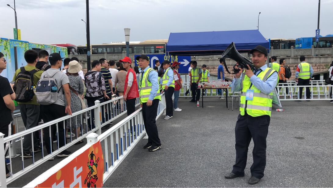 八、加強(qiáng)志愿者服務(wù)保障。每天組織8名志愿者在動漫廣場P7停車場(3名)、地鐵濱康站(2名)、蕭山歌劇院(1名)、地鐵江陵路站(2名)四個點(diǎn)上安排導(dǎo)乘服務(wù)臺并為乘客提供咨詢、導(dǎo)乘、失物招領(lǐng)等服務(wù)。