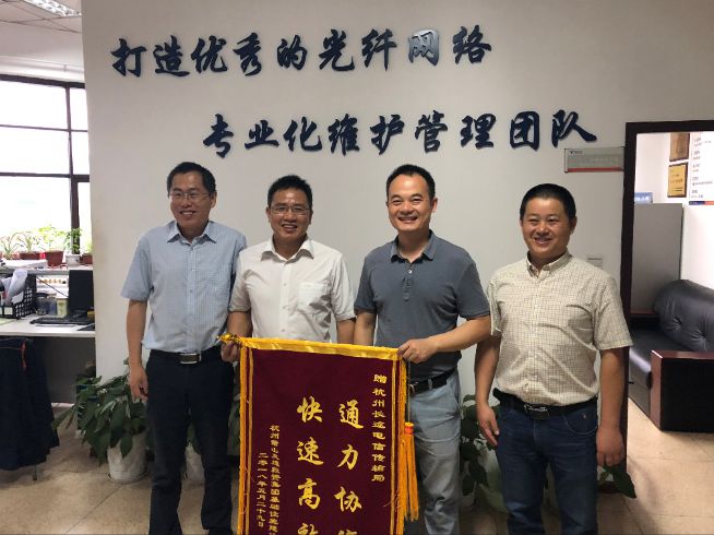 5月31日,杭州蕭山交通投資集團(tuán)基礎(chǔ)設(shè)施建設(shè)指揮部指揮長楊衛(wèi)軍、副指揮長邱國鋒贈送錦旗答謝杭州長途電信傳輸局對我單位工作的支持配合,希望雙方在今后的工作中,加強(qiáng)聯(lián)系,保持溝通,確保雙方工作順利開展。