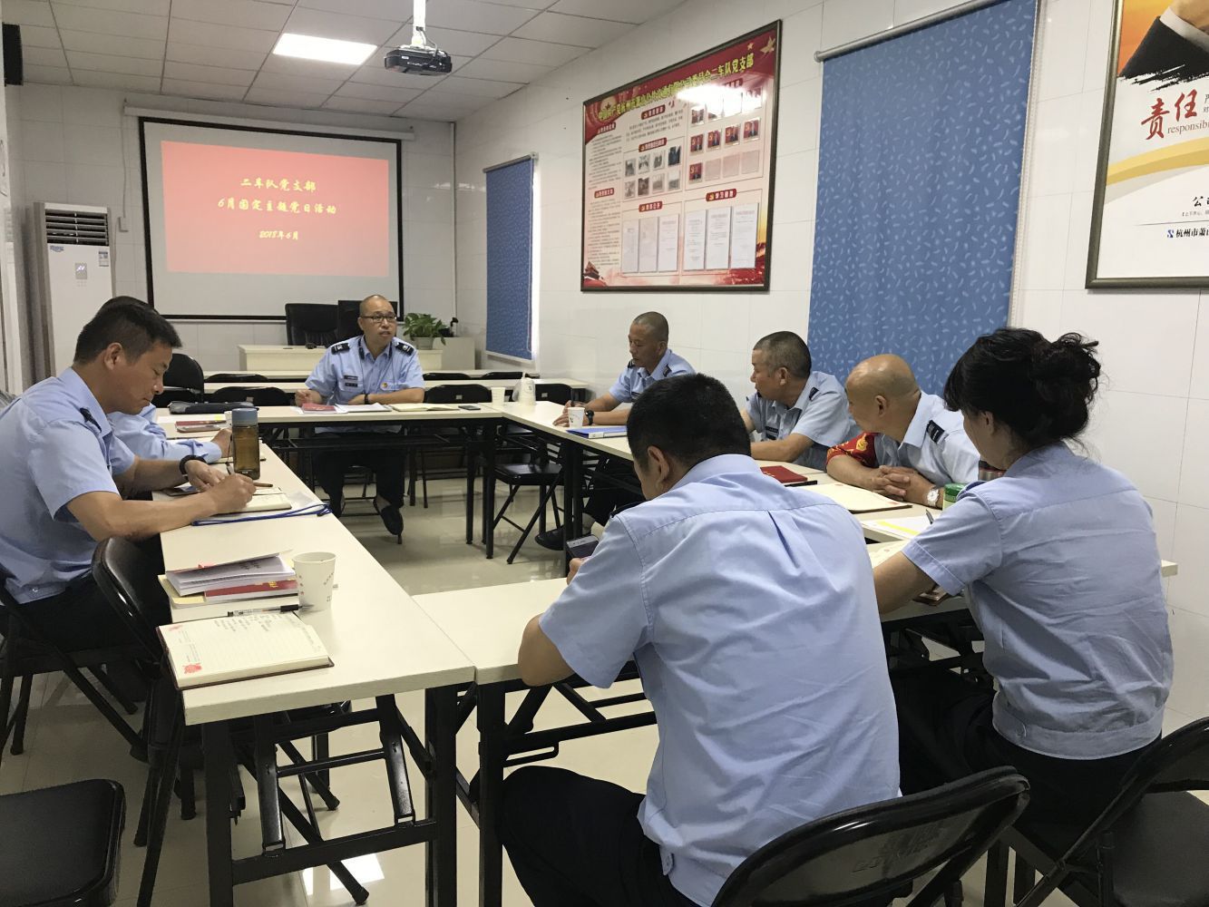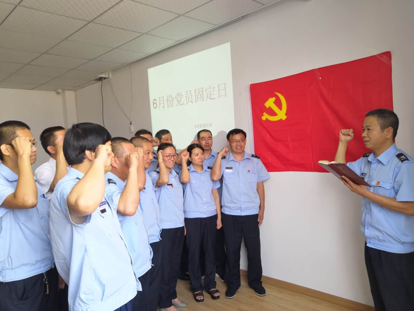 活動突出黨建引領,面向工作實際,具體抓好以下幾方面工作:一是確定黨員干部聯(lián)系服務職工群眾的最終名單及實施步驟;二是交叉互查黨員干部“三本賬”(工作日志、情親賬本、廉政賬本);三是傳達學習《關于開展紀念建黨97周年系列活動的通知》《關于開展“作風建設提升月”活動的通知》等文件精神;四是觀看“廉潔好家風”主題教育片;五是開展“黨員政治生日”“五個一”活動,舉行黨員重溫入黨宣誓儀式;六是開展紀律知識測試;七是對入黨積極分子E平臺在線學習、區(qū)改革開放40周年征文活動、鴻達路停保基地植樹活動等工作進行宣傳動員。同時,行政一、二支部還前往休博園社區(qū)聯(lián)合開展黨員服務進社區(qū)活動;行政四支部到蒙山路運河河道周邊進行環(huán)境美化志愿服務;六車隊支部則開展了職工家屬座談會暨“好家風,好家規(guī)”分享會。