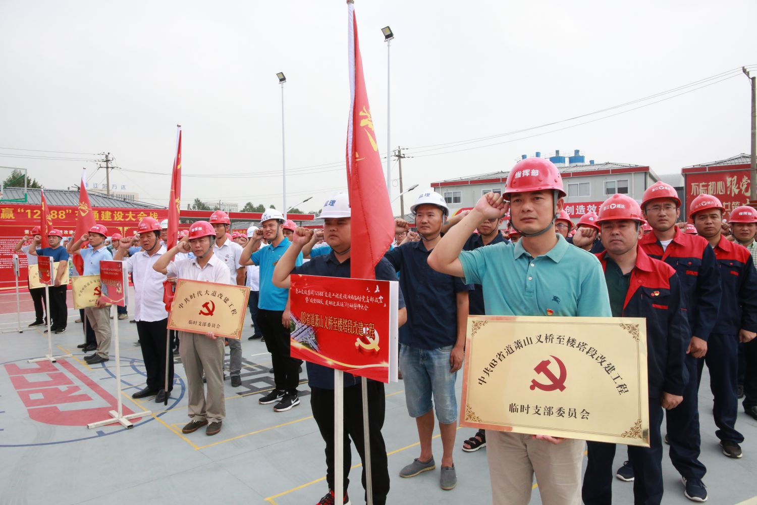 會(huì)上,金文華宣讀了各臨時(shí)黨支部成立文件,趙文建和祝關(guān)翔向各臨時(shí)黨支部授牌及授“黨員突擊隊(duì)”旗幟;臨時(shí)黨支部書(shū)記、副書(shū)記、工地黨員代表作了表態(tài)發(fā)言;全體黨員重溫了入黨誓詞。
