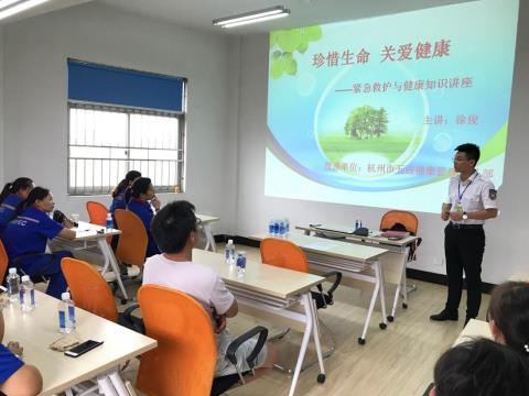 講座針對現場緊急救護、緊急情況判斷處理、創傷急救等方法做了詳細講解。結合日常生活和工作,主講人徐俊老師以生動的語言、真實的案例,分別就急救重要性、基礎知識、心肺復蘇技術、車禍救助、自動除顫儀的使用方法進行了講解和示范。并就如何在事故發生的第一時間采取正確、有效的應急措施;如何在救護人員到來之前,最大限度地挽救生命,進行了模擬操作和現場示范。